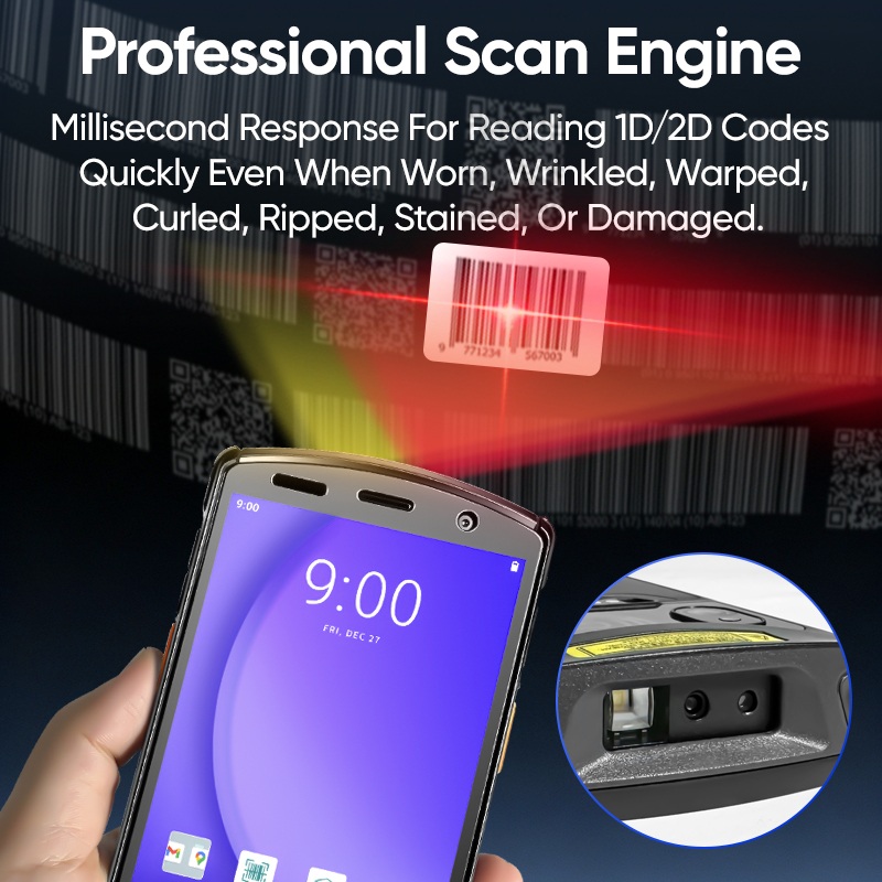5,7-дюймовый большой экран, 64-битный восьмиядерный процессор Qualcomm, портативный терминал-сканер 2,4 ГГц