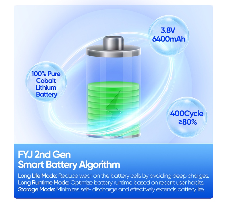 7. 6400mAh 100% Pure Cobalt Lithium Battery,No Bulging