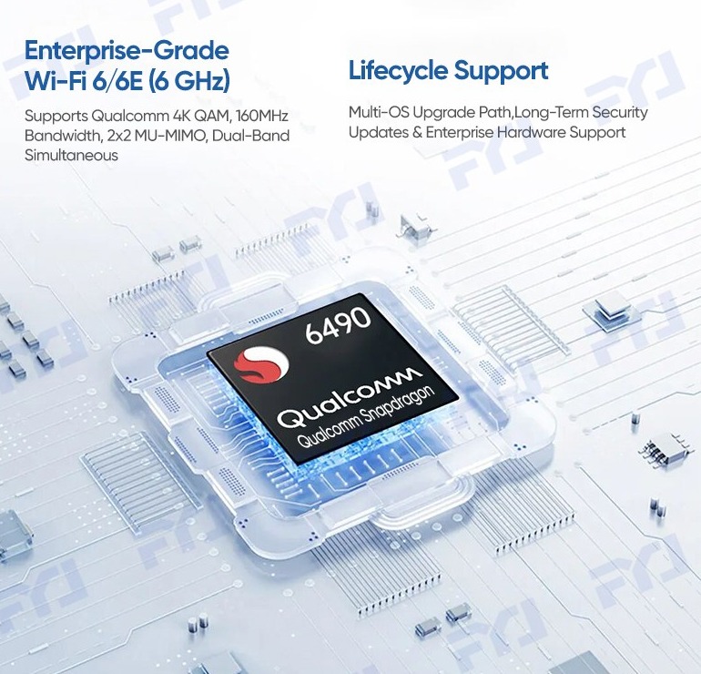 Поддерживает Qualcomm 4K QAM, полосу пропускания 160 МГц, 2x2 MU-MIMO, одновременную работу в двух диапазонах.